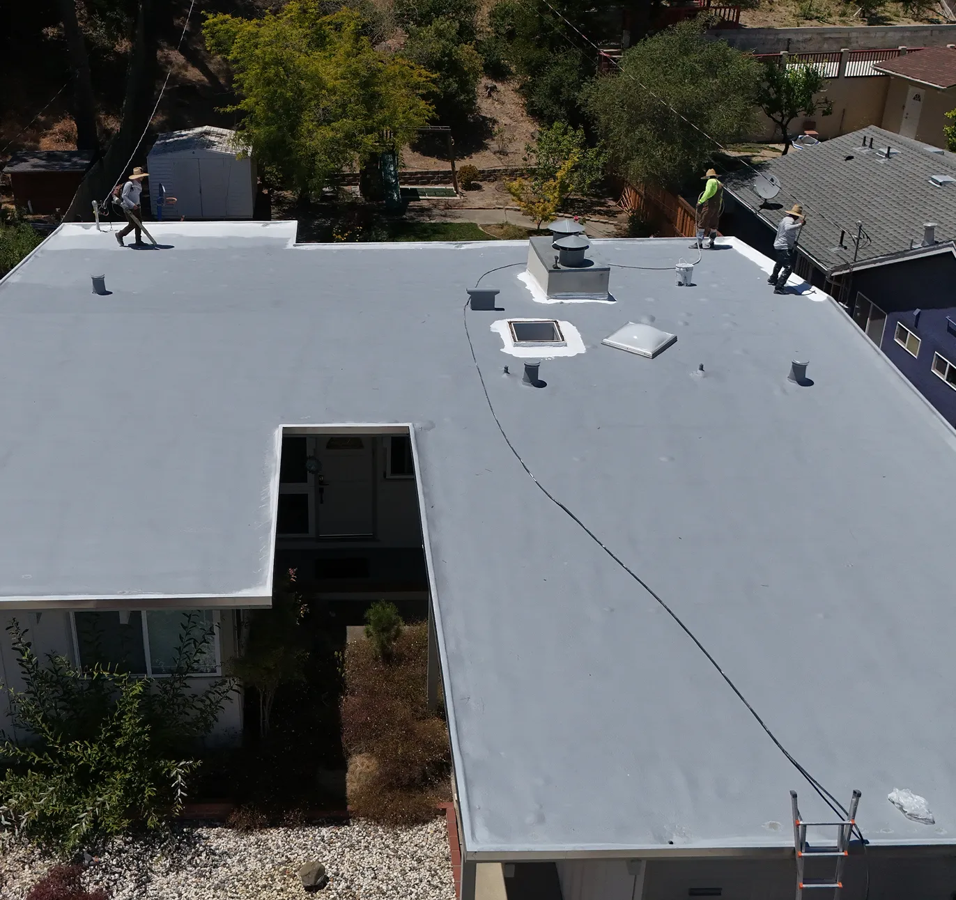 Other coating colors are available for these types of situations such as Tan and Light Gray. Dark coatings are not recommended because they are not certified for Cool Roof Systems; dark coatings absorb too much heat and wear out too fast.